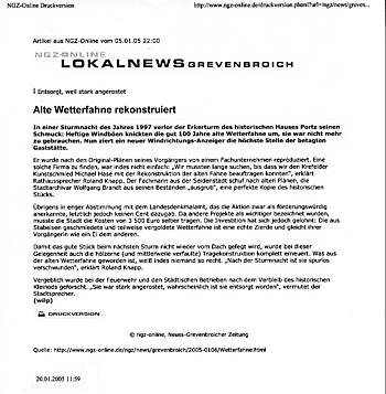 Replica of the weather vane of the historic " Haus Porz" in Grevenbroich