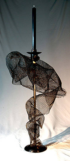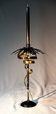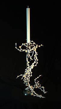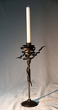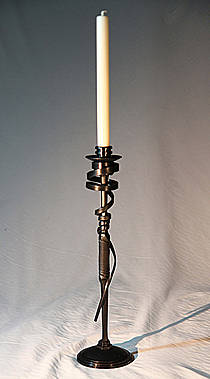 Diese geschmiedeten Kerzenst�nder sind in einem Materialmix aus Stahl und durchgef�rbtem Beton gearbeitet.