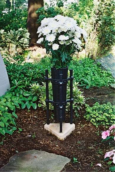 Das Grabzeichen ist als Lebensbaum gestaltet, an dessen eisernen Zweigen frei bewegliche geschmiedete Bl�tter h�ngen, die im Wind schwingen, sich ber�hren und klingen.