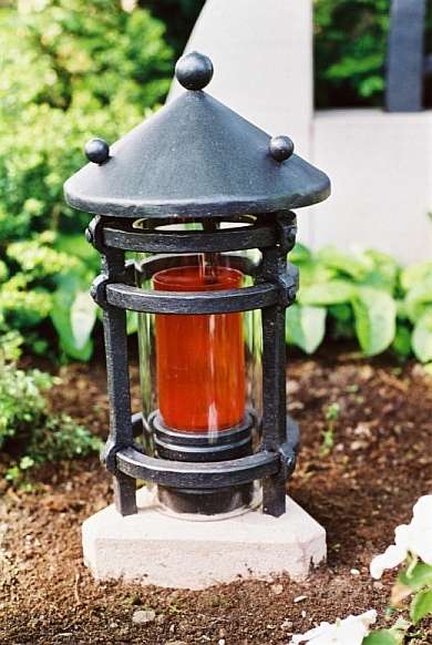 Das Grabzeichen ist als Lebensbaum gestaltet, an dessen eisernen Zweigen frei bewegliche geschmiedete Bl�tter h�ngen, die im Wind schwingen, sich ber�hren und klingen.